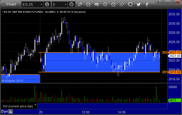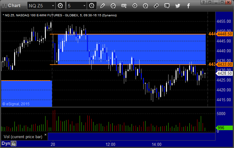 The markets gapped down and early volume was very light. We had a loser and a winner in the ES Opening Range plays, see that section below. NASDAQ volume closed at 1.5 billion shares on a generally flat day as we push deeper into earnings. No technical setups occurred to call.
