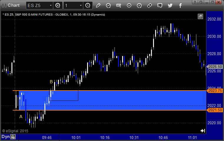 ES Opening Range Play triggered short at A and didn’t work, triggered long at B and worked great: