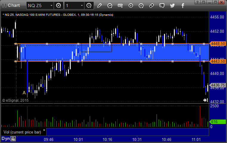 NQ Opening Range Play trigger would have been far too far out of the opening range to take at A: