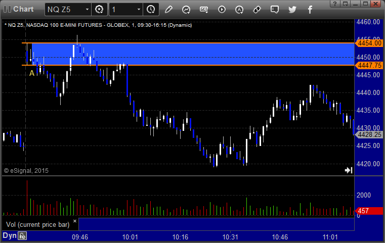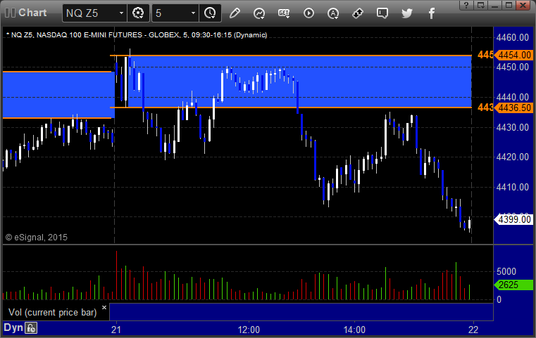The markets gapped up and headed lower, with the ES and NQ Opening Range plays both working. We added another call on the short side about 20 minutes in that worked nicely for the gap fill, and NASDAQ volume closed the session at 1.7 billion shares, boosted by some stocks that reported earnings.