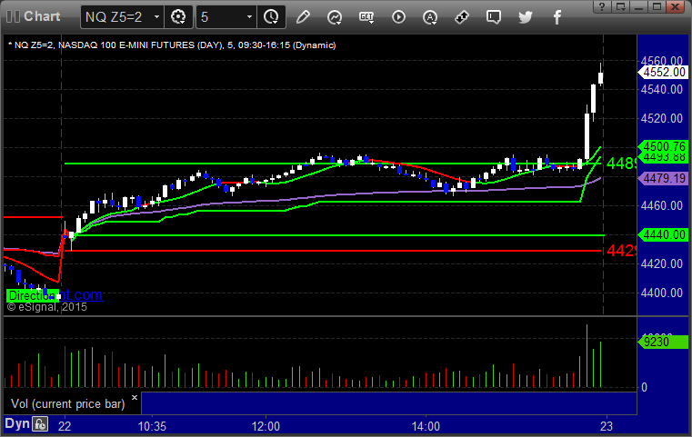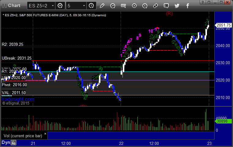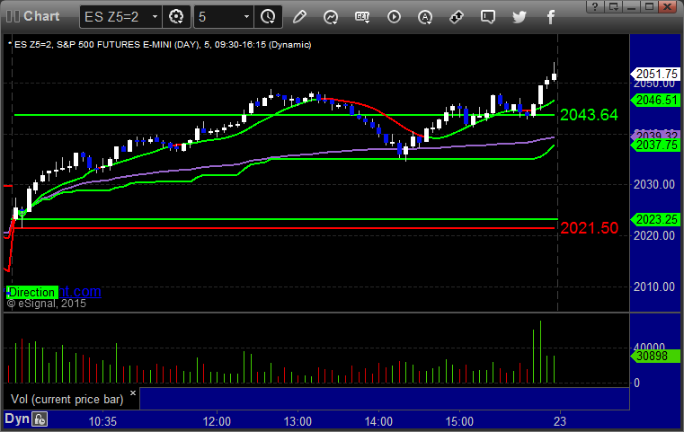 As usual, let’s start by taking a look at the ES and NQ with our market directional lines, VWAP, and Comber on the 5-minute chart from today’s session: