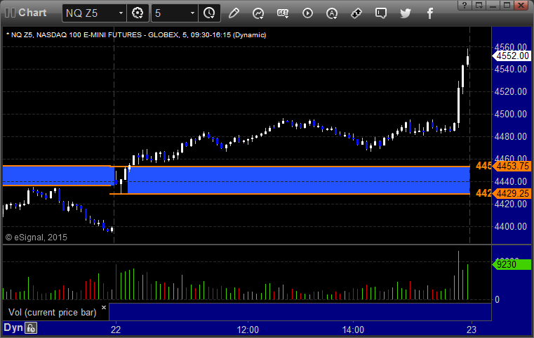 The markets gapped up and kept going after the NQ tested the UPT. NASDAQ volume was 1.9 billion, but much of this was earnings stocks. We closed at highs.