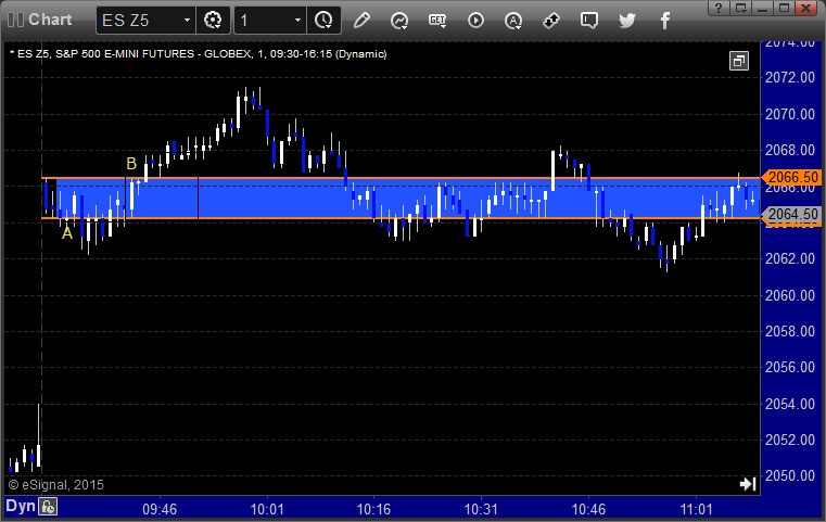 ES Opening Range Play triggered short at A and didn’t work, triggered long at B and did: