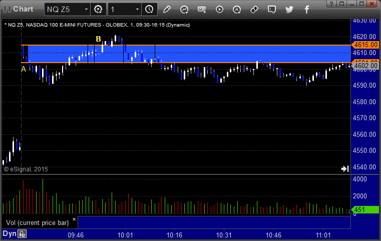 NQ Opening Range Play triggered short at A and worked enough for a partial, triggered long at B and also worked enough for a partial: