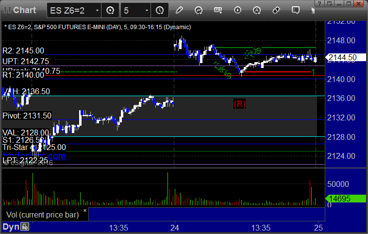 As usual, let’s start by taking a look at the ES and NQ with our market directional lines, VWAP, and Comber on the 5-minute chart from today’s session: