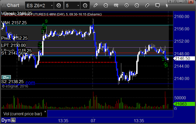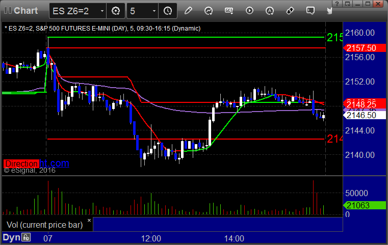 As usual, let’s start by taking a look at the ES and NQ with our market directional lines, VWAP, and Comber on the 5-minute chart from today’s session: