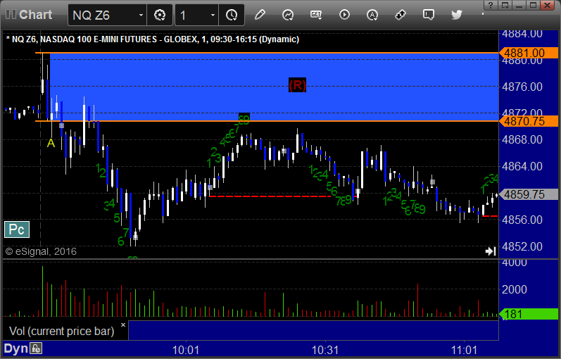 NQ Opening Range Play triggered long at A and worked enough for a partial: