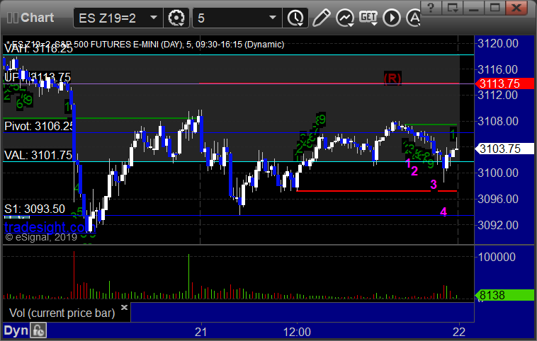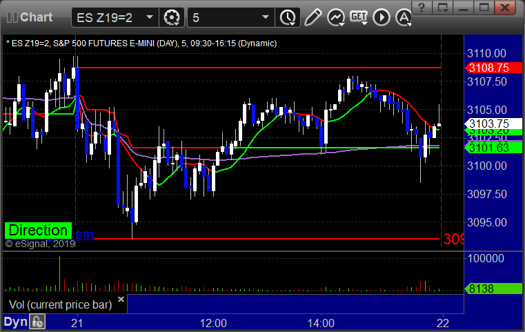 As usual, let’s start by taking a look at the ES and NQ with our market directional lines, VWAP, and Comber on the 5-minute chart from today’s session: