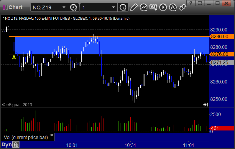 NQ Opening Range Play triggered short at A and worked enough for a partial: