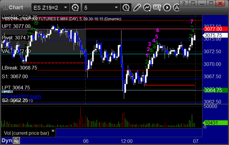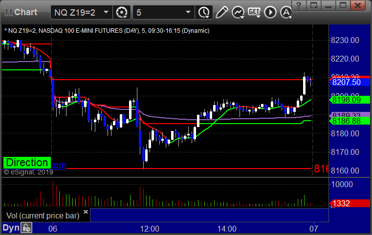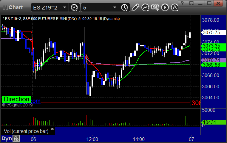 As usual, let’s start by taking a look at the ES and NQ with our market directional lines, VWAP, and Comber on the 5-minute chart from today’s session: