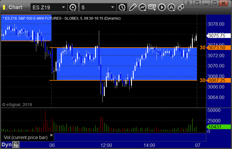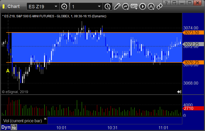 ES Opening Range Play triggered short at A and worked enough for a partial, triggered long at B and stopped: