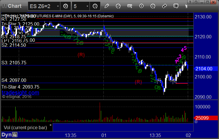 As usual, let’s start by taking a look at the ES and NQ with our market directional lines, VWAP, and Comber on the 5-minute chart from today’s session: