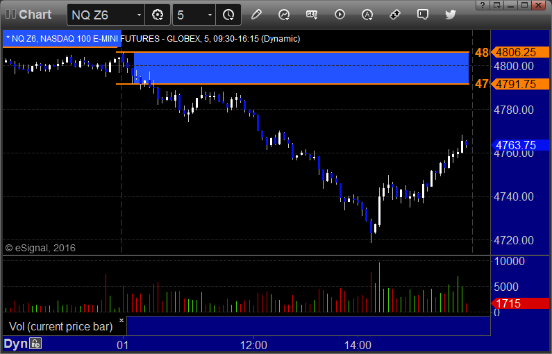 The markets opened fairly flat and headed down for the session, although the first two hours were fairly narrow on poor volume, but things picked up speed over lunch. NASDAQ volume was 1.6 billion in the end, but the first two hours were horrible. Opening Range plays worked great.