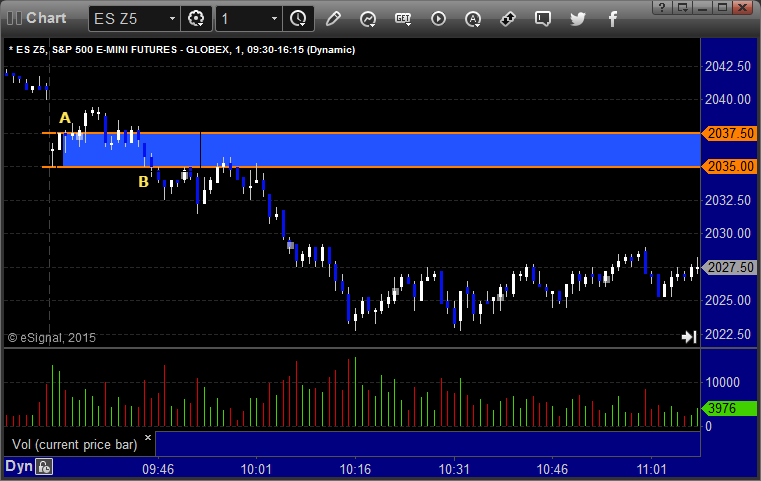 ES Opening Range Play triggered long at A and didn’t work, triggered short at B and did: