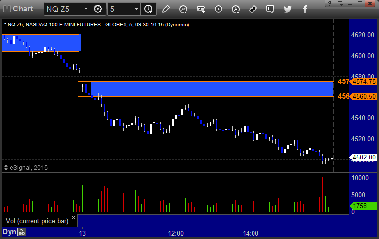 Markets gapped down, headfaked a move up to fill, and then rolled to the downside for the first hour and that was most of the move for the session on 1.7 billion NASDAQ shares. The Opening Range plays triggered one way and didn’t work and another and did. We had a separate ES call that worked. See those sections below.