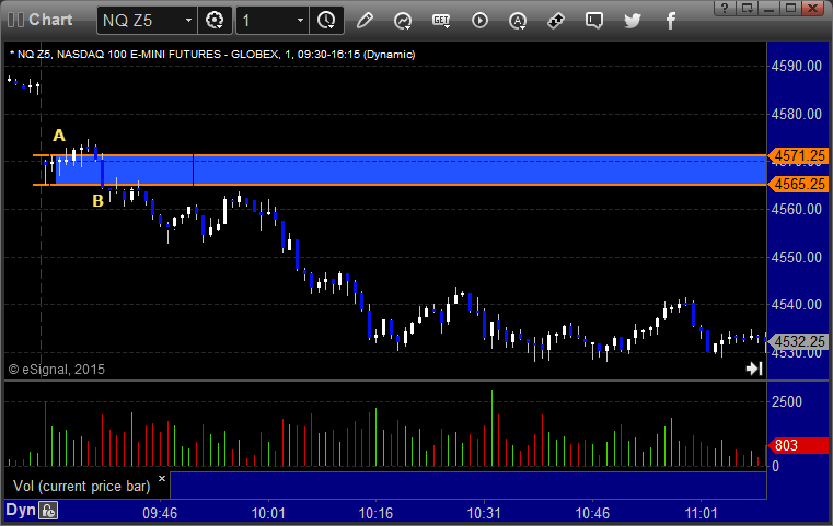 NQ Opening Range Play triggered long at A and didn’t work, triggered short at B and did: