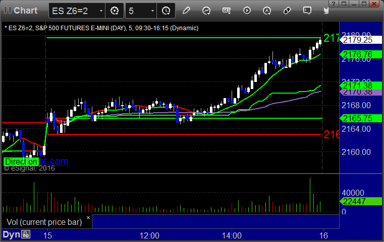 As usual, let’s start by taking a look at the ES and NQ with our market directional lines, VWAP, and Comber on the 5-minute chart from today’s session: