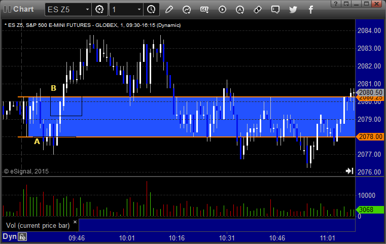 ES Opening Range Play triggered short at A and didn’t work, triggered long at B and did: