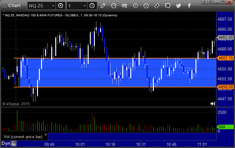 NQ Opening Range Play triggered short at A and didn’t work, triggered long at B and did: