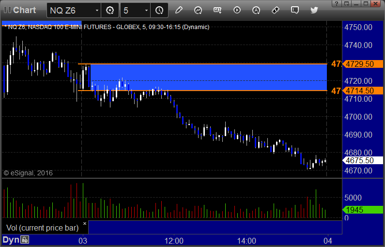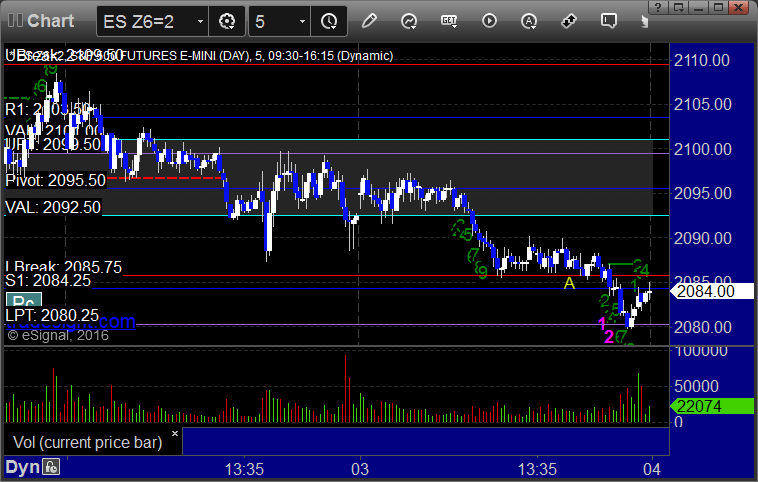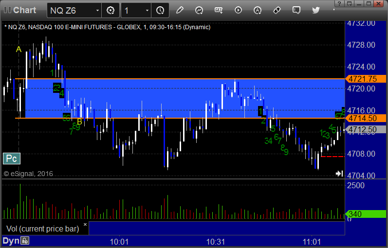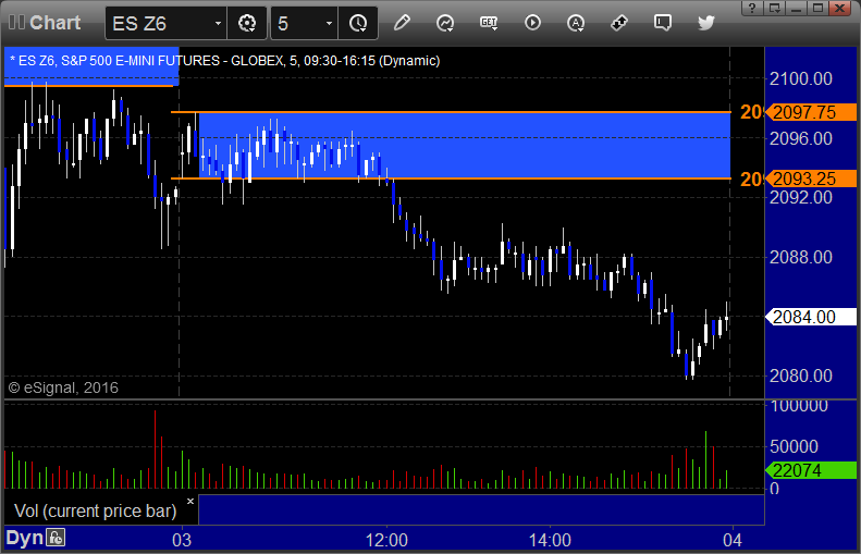 ES Opening Range Play triggered long at A and worked enough for a partial, triggered short at B and stopped: