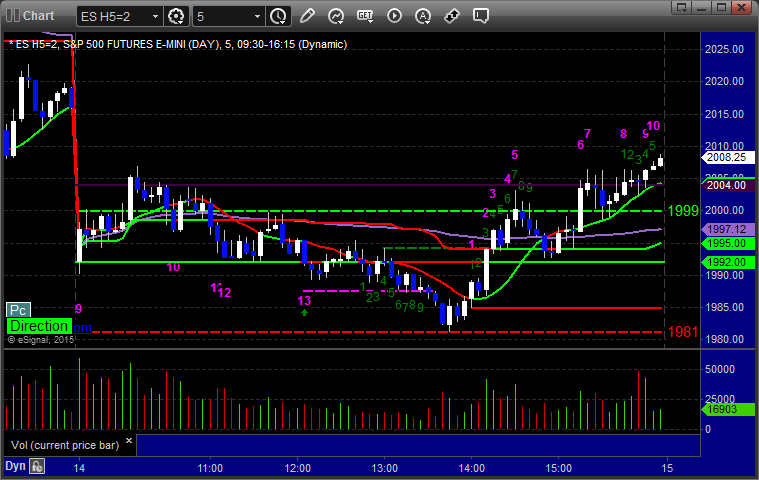 As usual, let’s start by taking a look at the ES and NQ with our market directional lines, VWAP, and Comber on the 5-minute chart from today’s session: