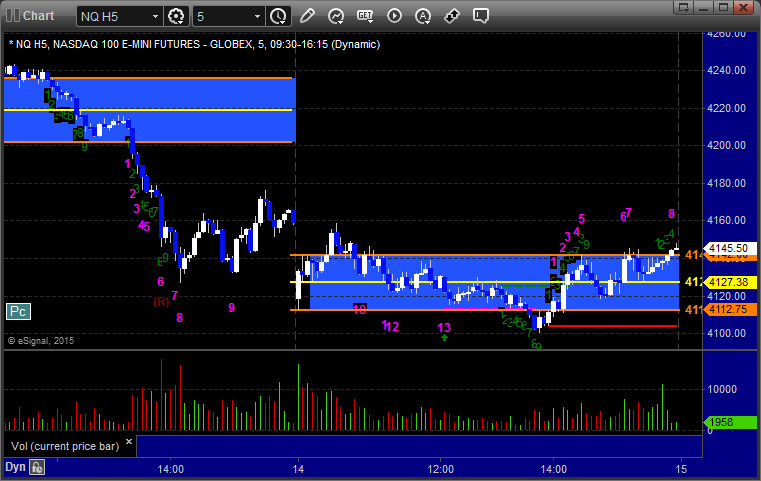 The markets gapped down Wednesday, almost as much as they gapped up Tuesday, but this time rallied up toward the gaps out of the gate. The NQ almost made it, but the ES did not. Most of the range was established by the first 2 hours and it was a bit choppy. It looked like there was an options unraveling move to the downside after the first hour, but then the markets rallied back in the last two hours and closed at the range highs on 1.9 billion NASDAQ shares.