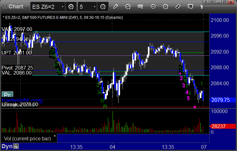 As usual, let’s start by taking a look at the ES and NQ with our market directional lines, VWAP, and Comber on the 5-minute chart from today’s session: