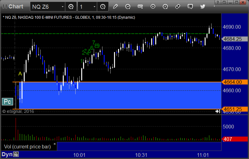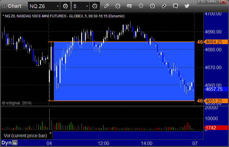 The markets opened fairly flat, dipped for about 20, and then turned up, making the highs of the day over lunch and then drifting back to the VWAP on 1.8 billion NASDAQ shares. Opening Range Plays worked, see that section below.