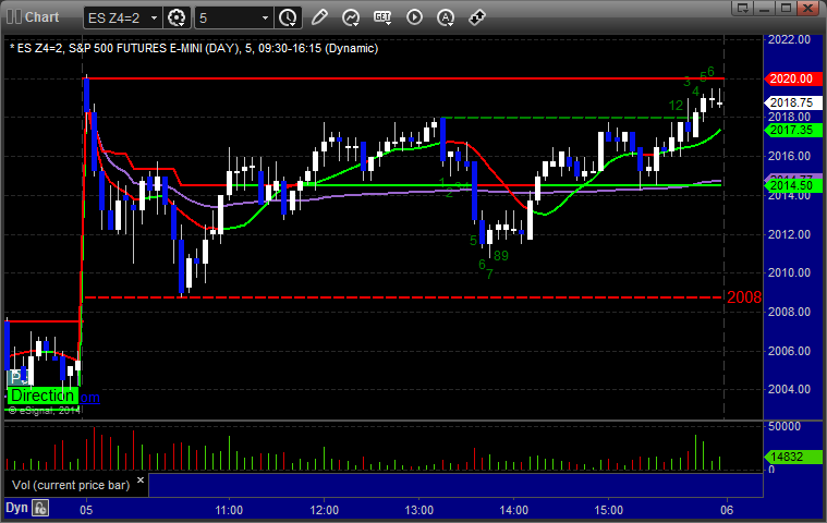 As usual, let’s start by taking a look at the ES and NQ with our market directional lines, VWAP, and Comber on the 5-minute chart from today’s session:
