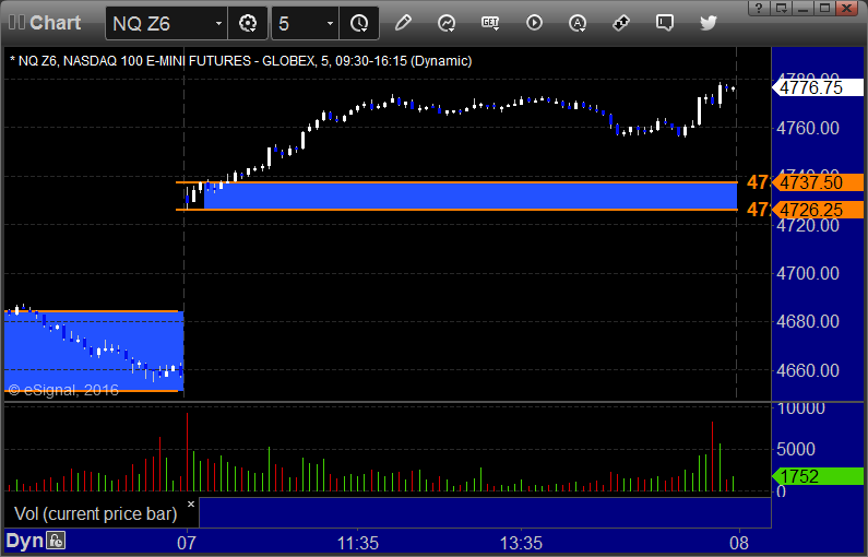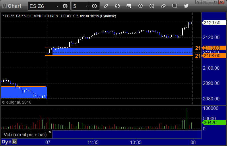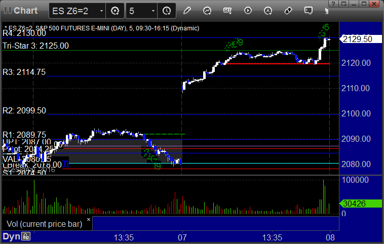 The markets gapped up big on the news that the FBI was (still) not going to press charges against Clinton. We continued a bit higher and hit the key 2125.00 ES tri-star level and sat there for hours on 1.6 billion NASDAQ shares.