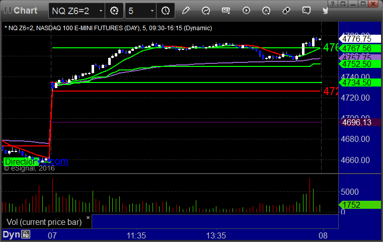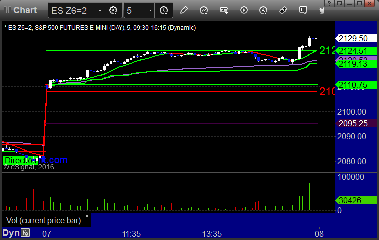 As usual, let’s start by taking a look at the ES and NQ with our market directional lines, VWAP, and Comber on the 5-minute chart from today’s session: