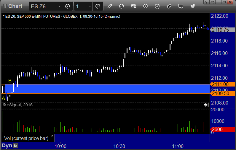 ES Opening Range Play triggered short at A and stopped, triggered long at B and worked: