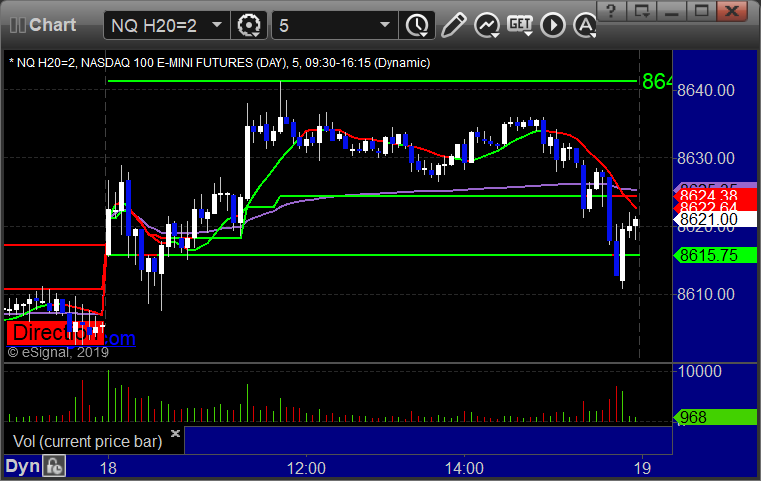 As usual, let’s start by taking a look at the ES and NQ with our market directional lines, VWAP, and Comber on the 5-minute chart from today’s session: