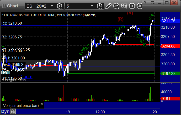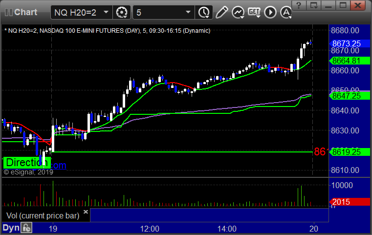 As usual, let’s start by taking a look at the ES and NQ with our market directional lines, VWAP, and Comber on the 5-minute chart from today’s session: