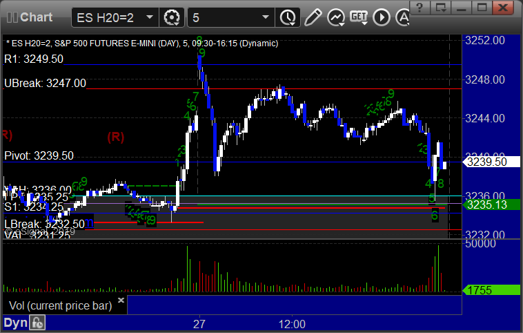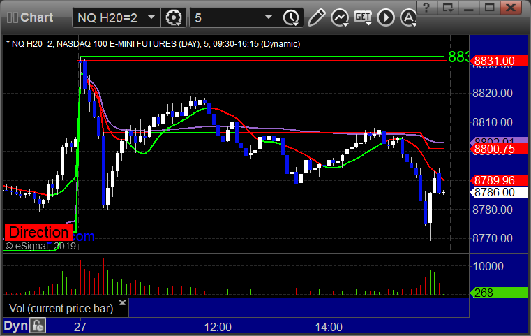 As usual, let’s start by taking a look at the ES and NQ with our market directional lines, VWAP, and Comber on the 5-minute chart from today’s session: