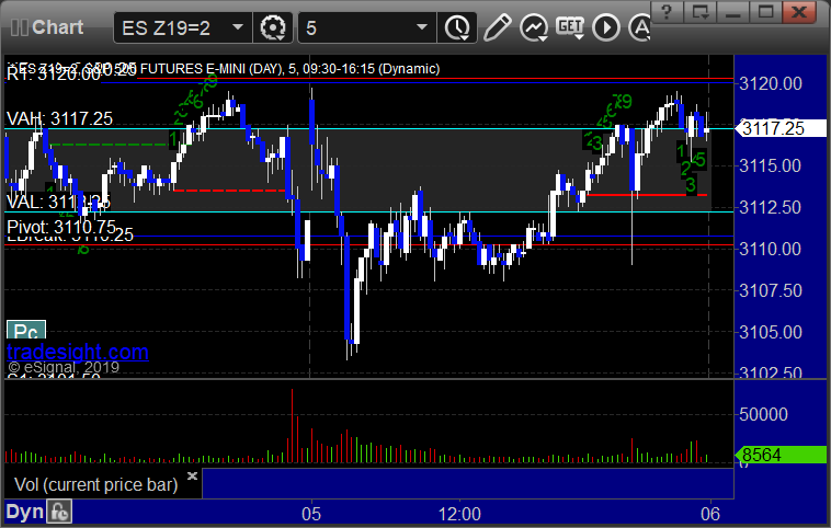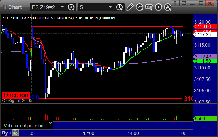As usual, let’s start by taking a look at the ES and NQ with our market directional lines, VWAP, and Comber on the 5-minute chart from today’s session: