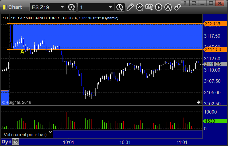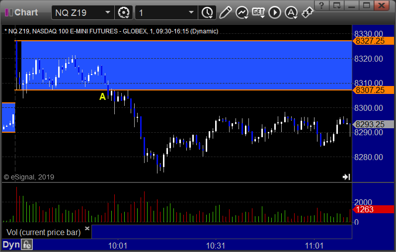 NQ Opening Range Play triggered short at A and worked but might have been too far out of range to take under the rules so we won’t count it: