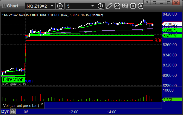 As usual, let’s start by taking a look at the ES and NQ with our market directional lines, VWAP, and Comber on the 5-minute chart from today’s session: