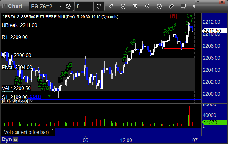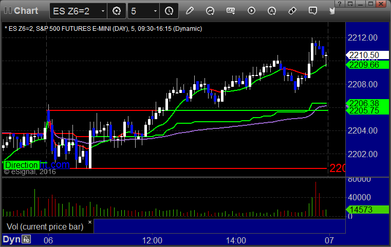 As usual, let’s start by taking a look at the ES and NQ with our market directional lines, VWAP, and Comber on the 5-minute chart from today’s session: