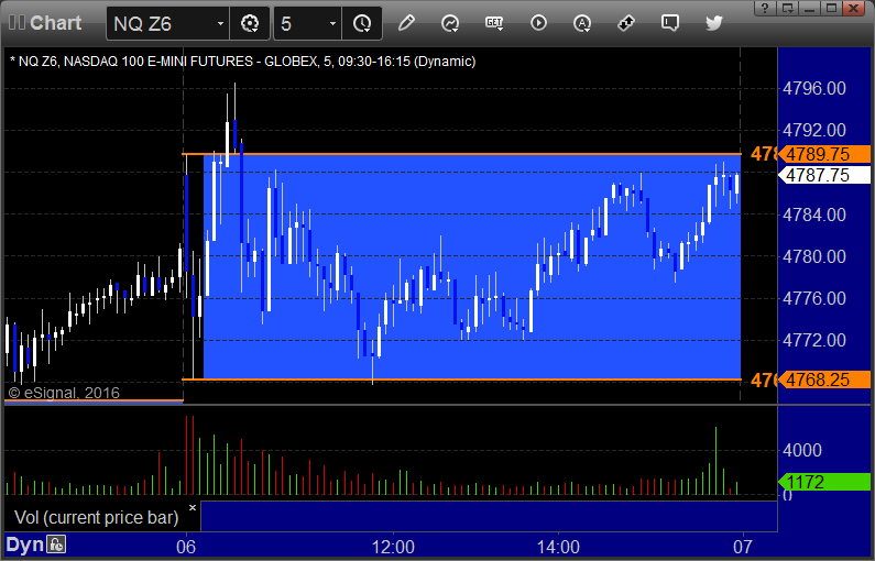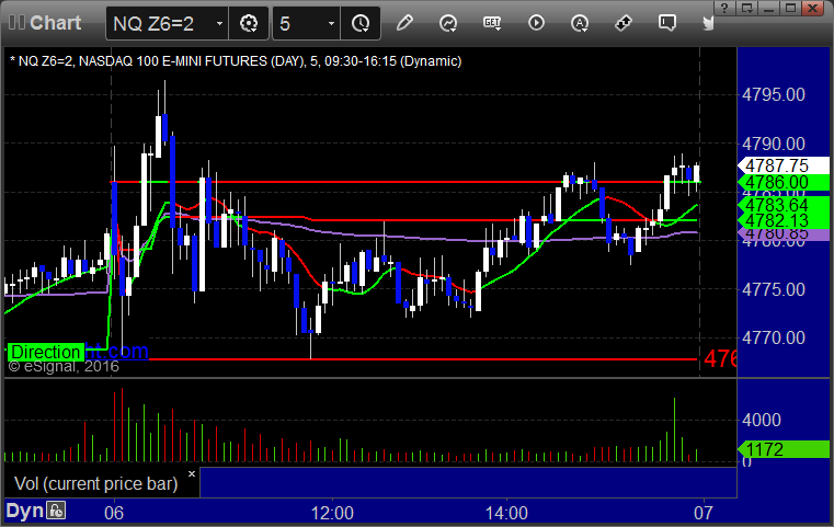 A very flat session again on 1.6 billion NASDAQ shares. Opening Range plays worked some, and an additional call never triggered in the ES.