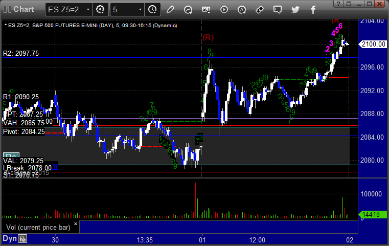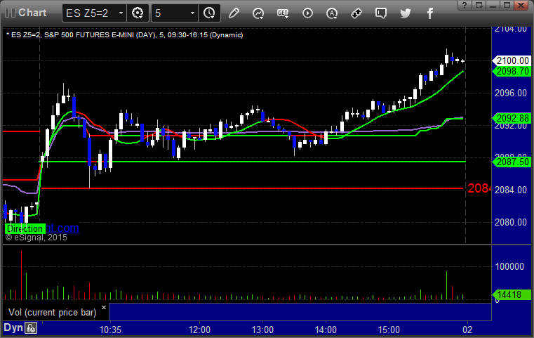 As usual, let’s start by taking a look at the ES and NQ with our market directional lines, VWAP, and Comber on the 5-minute chart from today’s session: