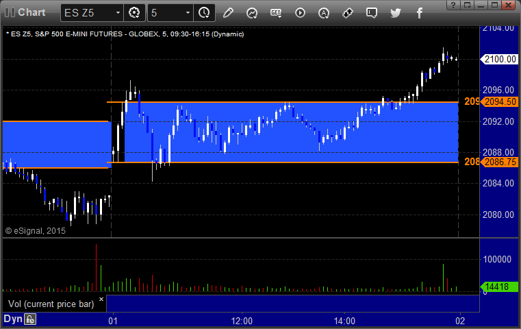 A huge day for futures trading as the opening range plays worked great (after the NQ stopped out once first). The markets gapped up, pulled back briefly, and then ran hard for 30 minutes until rumors hit of a bomb threat in the UK that tanked things briefly. That killed the good volume and momentum for the session and the range for the day was set. The gaps did not fill. We had a great inverted cup and handle short idea on the NQ into the Value Area and for the gap fill, but it didn’t trigger.