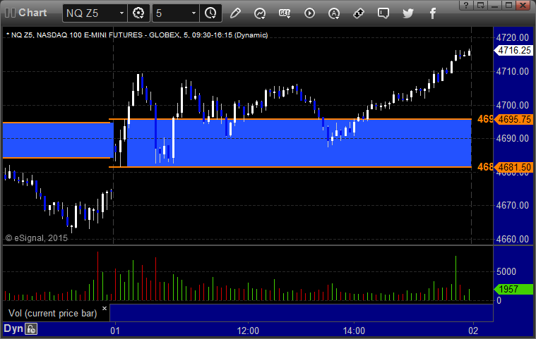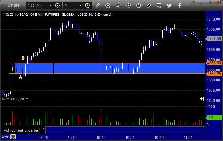 NQ Opening Range Play triggered short at A and stopped, triggered long at B and worked huge: