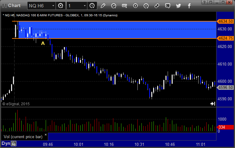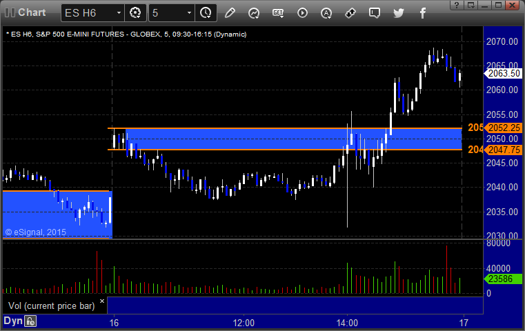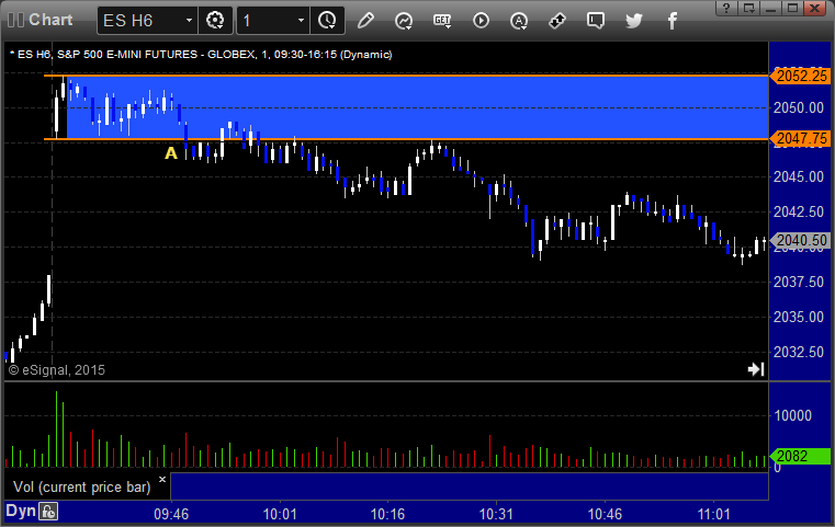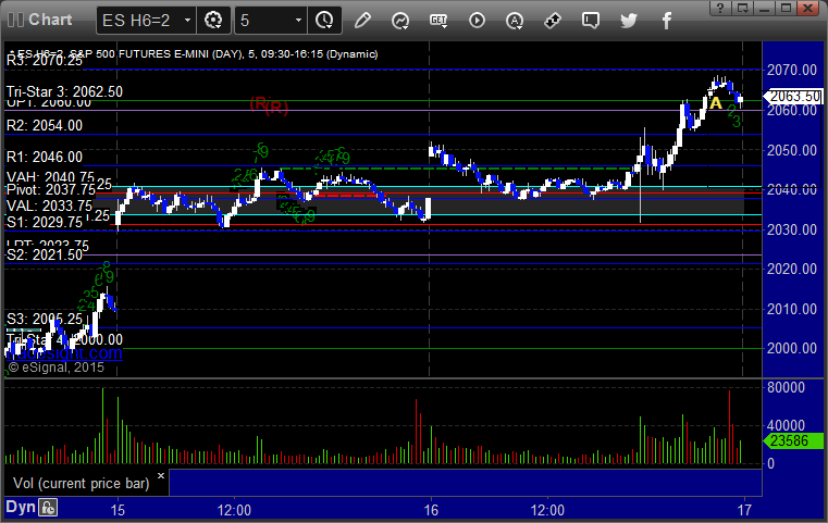Triggered long at A at 2060.25, hit first target for 6 ticks, and raised stop several times and stopped final at 2067.25 for 28 ticks: