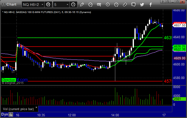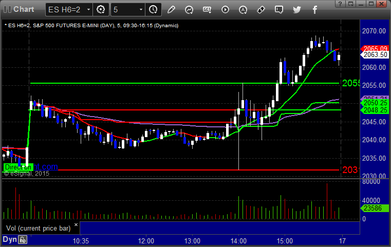 As usual, let’s start by taking a look at the ES and NQ with our market directional lines, VWAP, and Comber on the 5-minute chart from today’s session: