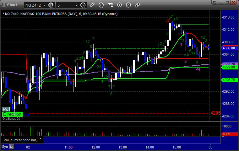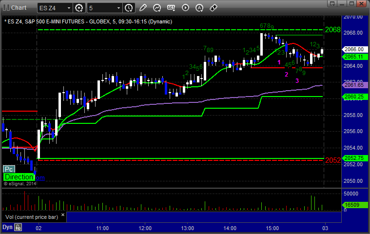 As usual, let’s start by taking a look at the ES and NQ with our market directional lines, VWAP, and Comber on the 5-minute chart from today’s session: