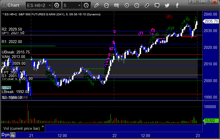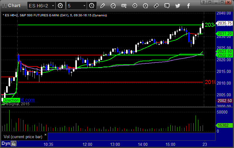 As usual, let’s start by taking a look at the ES and NQ with our market directional lines, VWAP, and Comber on the 5-minute chart from today’s session: