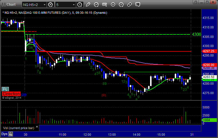The markets gapped down and moved a little for the first hour but then went flat as volume was worse than Monday. NASDAQ volume closed at 1 billion shares. The Opening Range plays worked and the NQ Institutional Range play worked, but that was it. The official NQ call didn’t trigger.