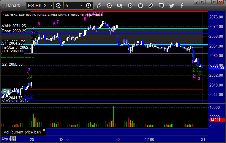 As usual, let’s start by taking a look at the ES and NQ with our market directional lines, VWAP, and Comber on the 5-minute chart from today’s session: