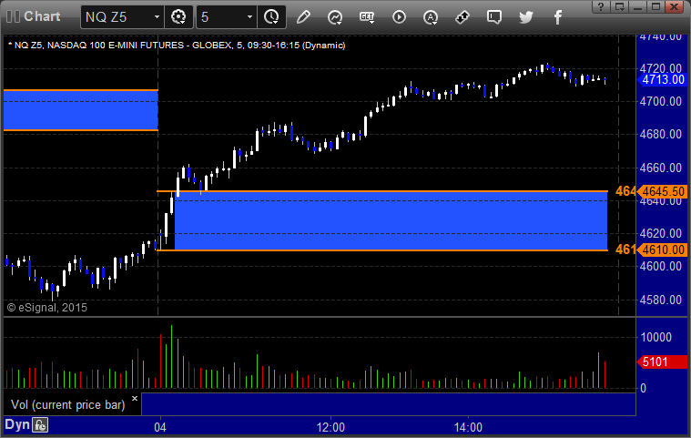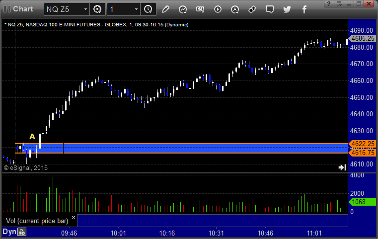 NQ Opening Range Play triggered long at A and might have been too far above the boundary to take, but it worked: